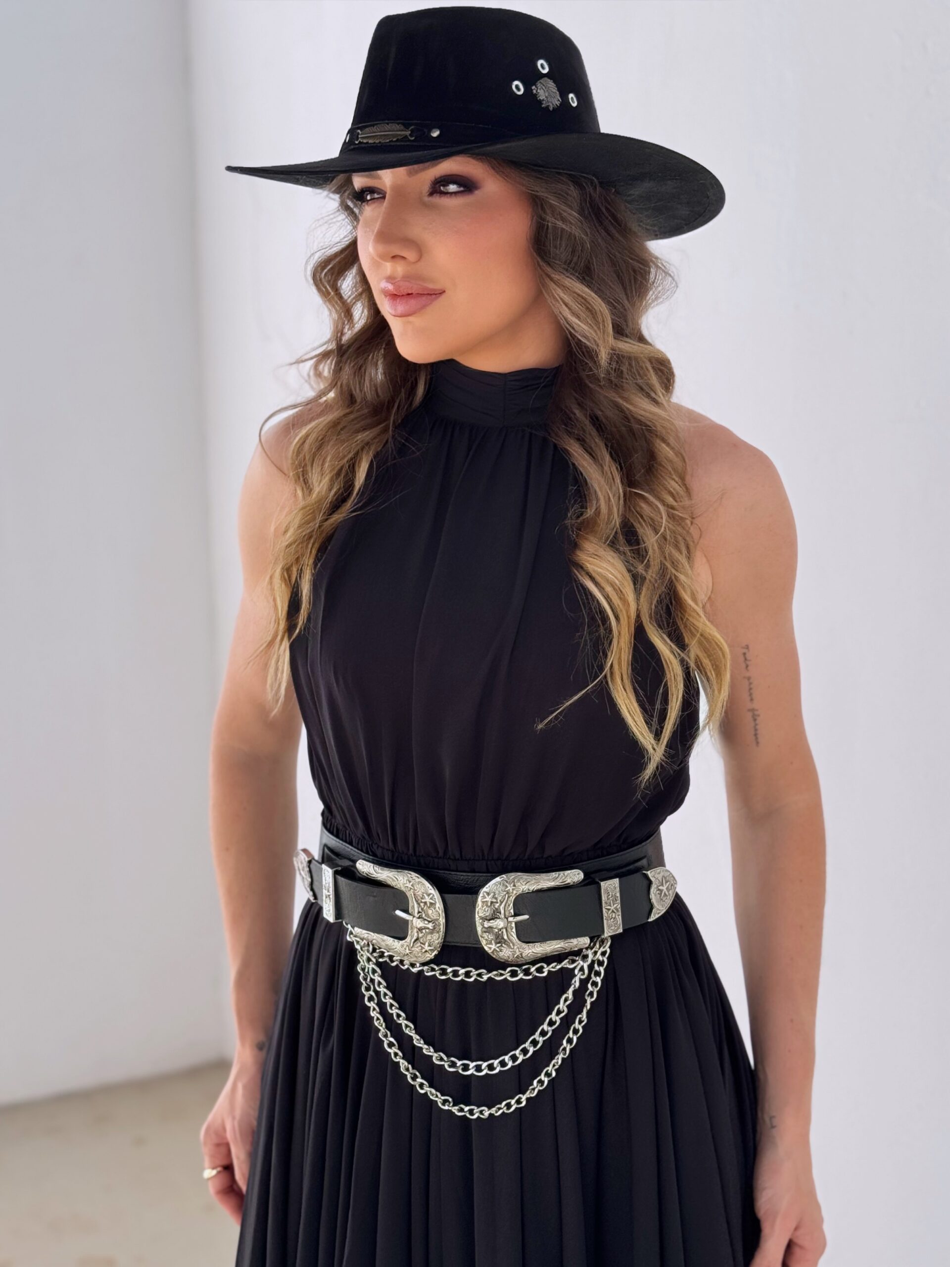 Com um formato elegante, o Chapéu JH Social Couro Preto Aba Curvada se destaca pela sua aparência robusta e acabamento impecável. Perfeito para complementar looks mais formais e requintados, esse modelo apresenta uma bandinha de couro com detalhes em metal que trazem um toque de sofisticação e autenticidade.